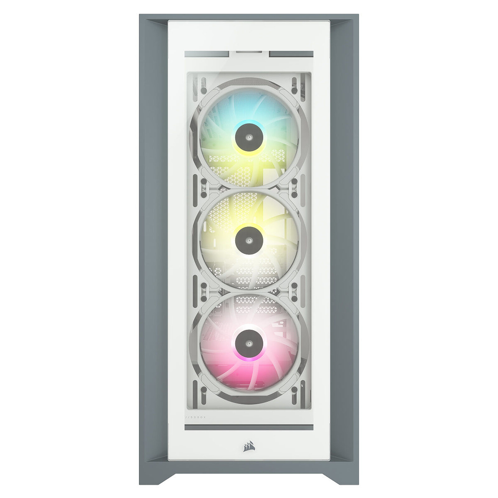 La Corsair iCUE 5000X RGB es una caja de alta gama con un enfoque en estética, visibilidad e iluminación. Está equipada con tres ventiladores RGB iCUE incluidos, paneles de cristal templado, una distribución interna eficiente y soporte total para refrigeración líquida. El sistema iCUE permite gestionar iluminación y ventiladores de forma unificada mediante el ecosistema Corsair.