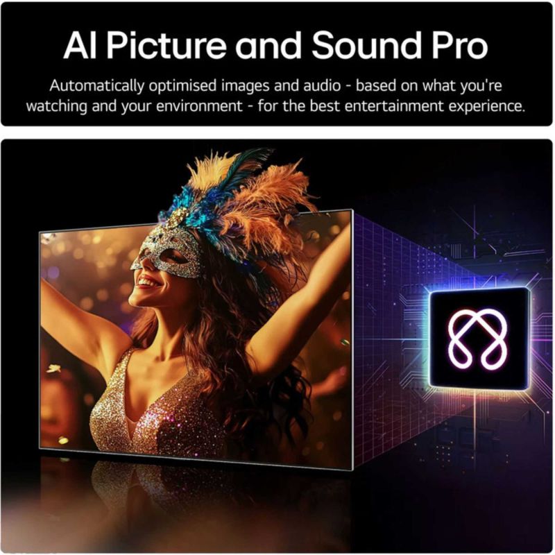 Disfruta de una calidad de imagen revolucionaria con el a11 AI Processor 4K Gen2 de LG, el chip más potente hasta ahora. Diseñado para ofrecer imágenes fluidas, escalado inteligente y optimización dinámica de HDR, garantiza negros más profundos, brillos intensos y un detalle realista asombroso. Dynamic Tone Mapping Pro ajusta cada fotograma con precisión de color y contraste mejorado, mientras que el procesamiento de movimiento basado en IA ofrece una acción fluida ideal para deportes y videojuegos.