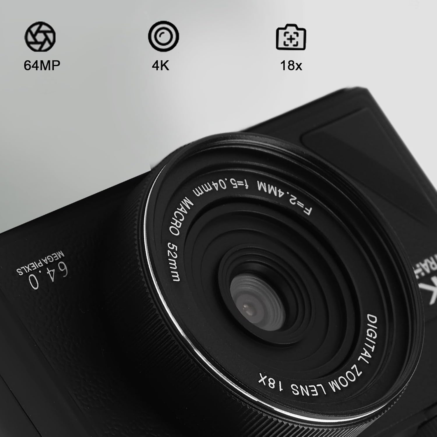64 MP • Vídeo 4K‑30fps • Pantalla frontal giratoria IPS 3,0″ • Zoom óptico 4× / total 18× • Flash integrado • Batería 1 150 mAh